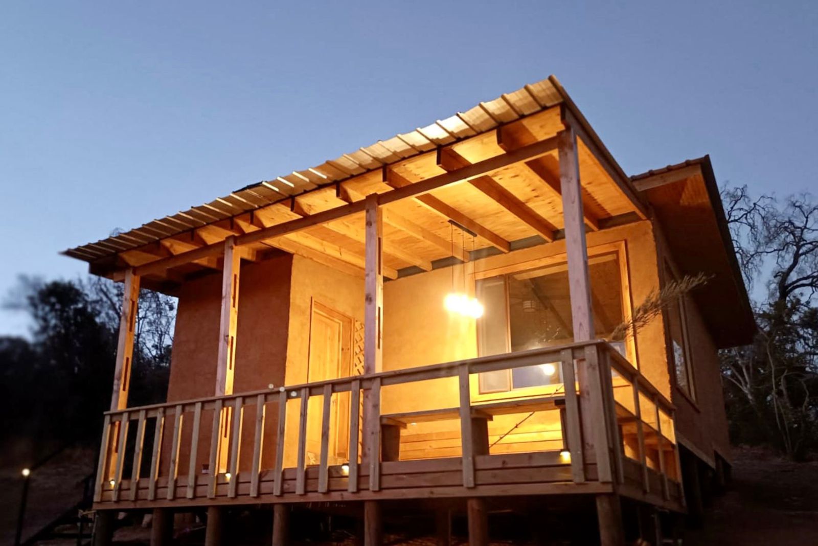 Estructura de madera, rellena con fardos de paja y estuco de tierra cruda